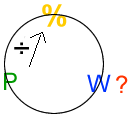 Finding the Whole What if you don't know the whole, or the 100% amount? Look at the following example: 12 workers at Pitfall Road Service, or 15% of all employees, received a bonus for their teamwork and cooperation on the job. How many people are employed? It doesn't say. But you do know that 12 workers = 15% or .15 To find the whole when you know only the parts, change the process. Of course! P / % = W 12 ÷ .15 = 80 The total number of employees is 80. Are you sure? Test it with your first formula! % x W = P .15 X 80 = 12. There you have it. So here's another formula to help you work with percentages.
