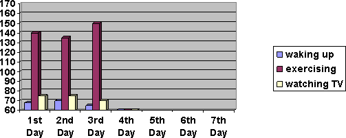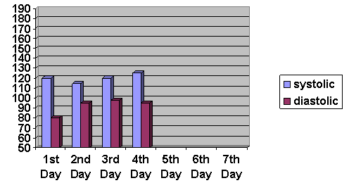 You will have two choices here. Pick one. Project 1: Some drugstores and the drugstores at WalMart have free blood pressure reading machines. If you live close to a place like this, keep track of your blood pressure for about a week. (You may want to tell the pharmacist what you are doing.) Create a chart of the results you obtained. Your chart will look like this one.